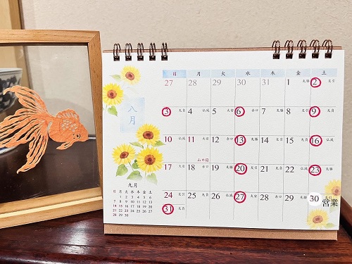 今月のお休みは、水曜、土曜(30日は営業)、第1,第5日曜日とさせていただきます。